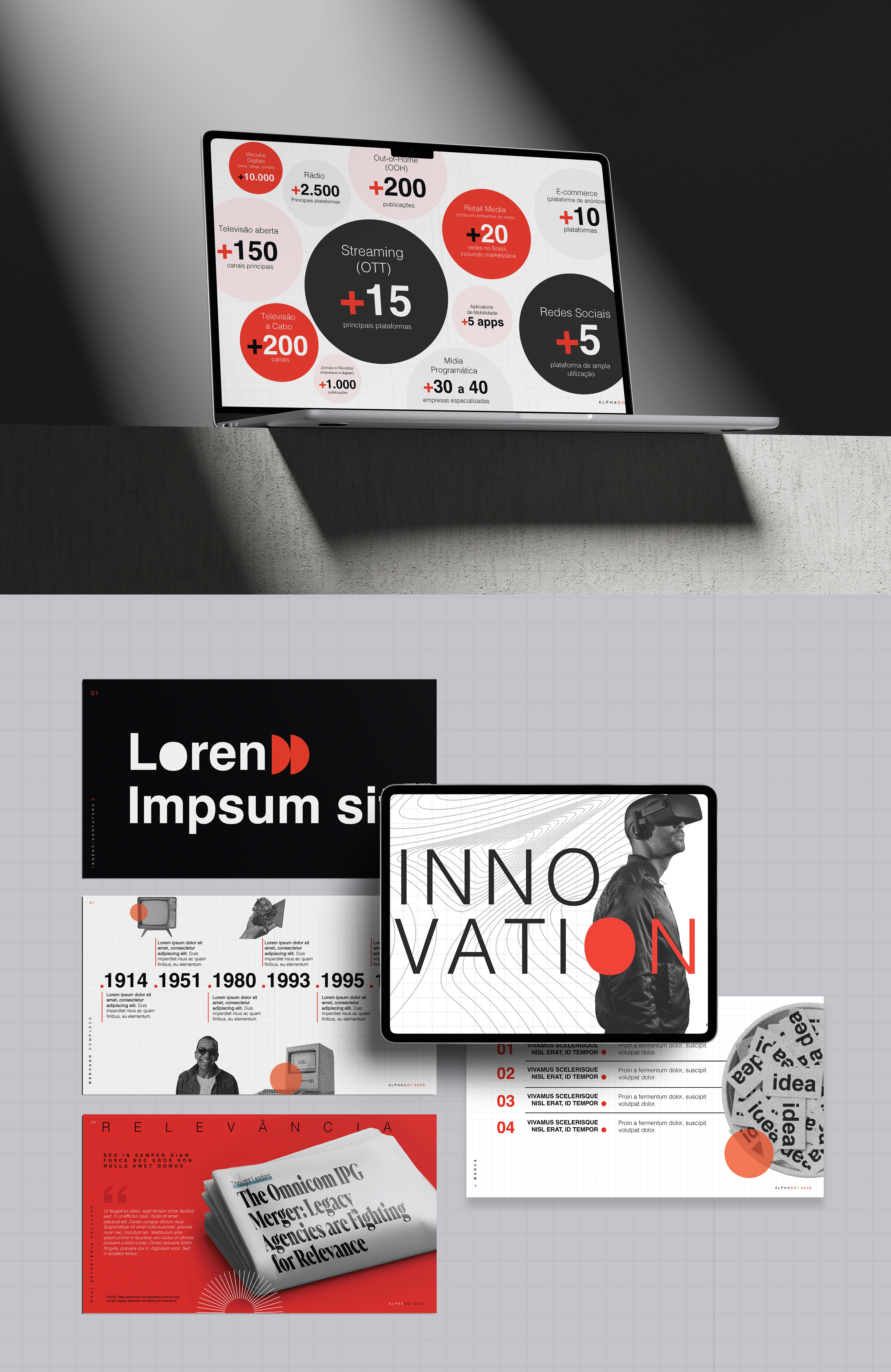 The goal of the project was to visually translate the agency's core pillars — modernity, innovation, and agility — into a bold layout with a strong advertising-driven aesthetic.