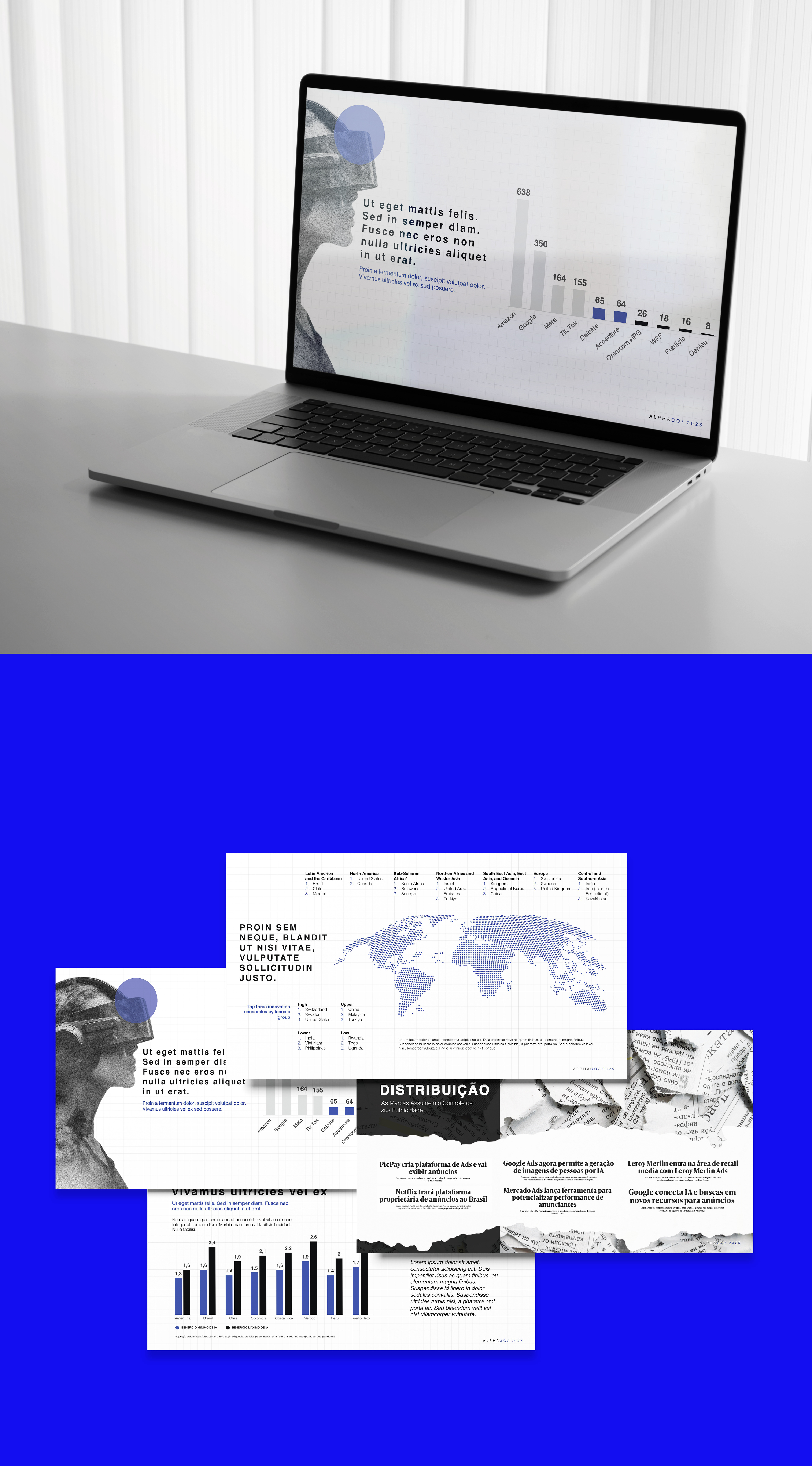 A estética combina elementos gráficos contemporâneos, tipografia marcante e composições que reforçam dinamismo, performance e relevância no cenário atual da comunicação.